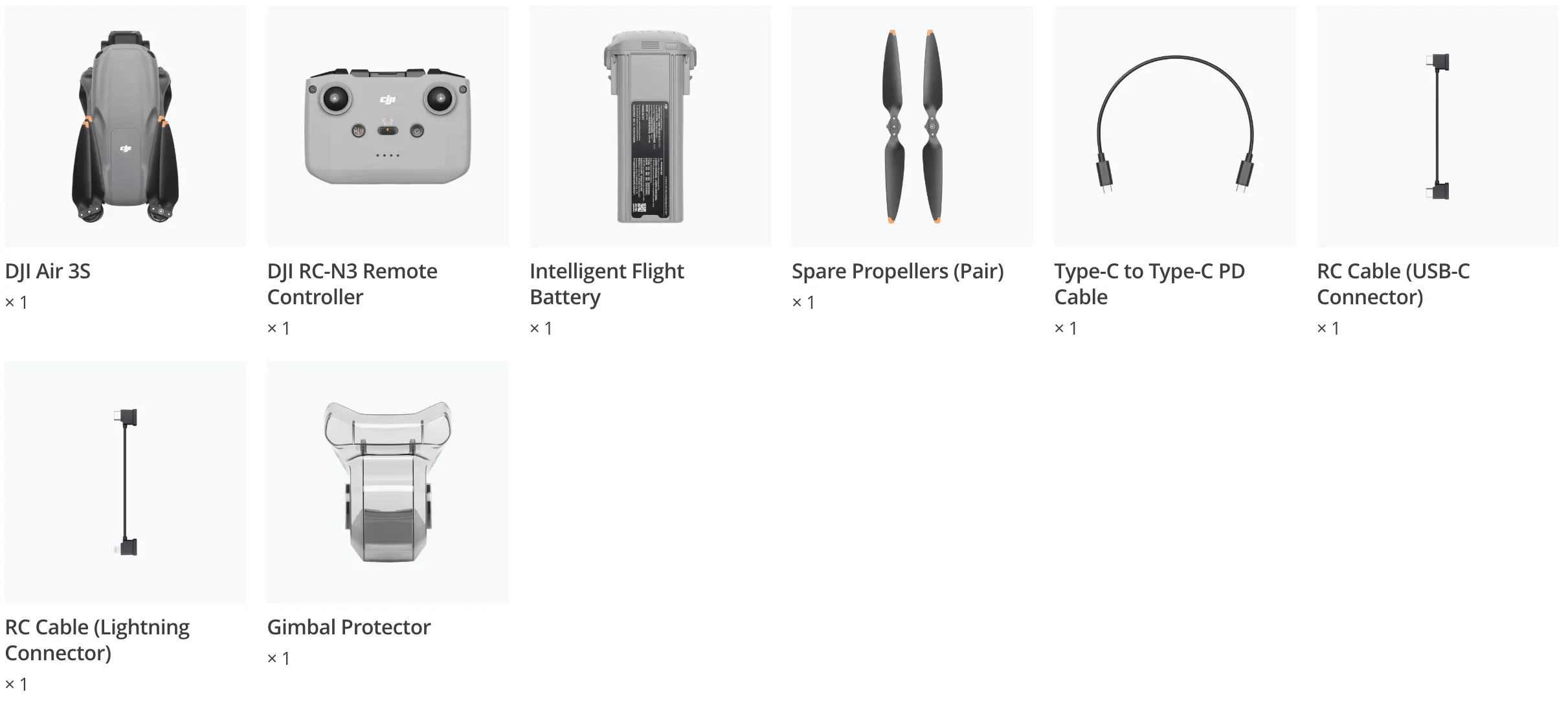 DJI Air 3S kommer i forskellige kombinationer med forskelligt tilbehør, der kan imødekomme alle dine behov.