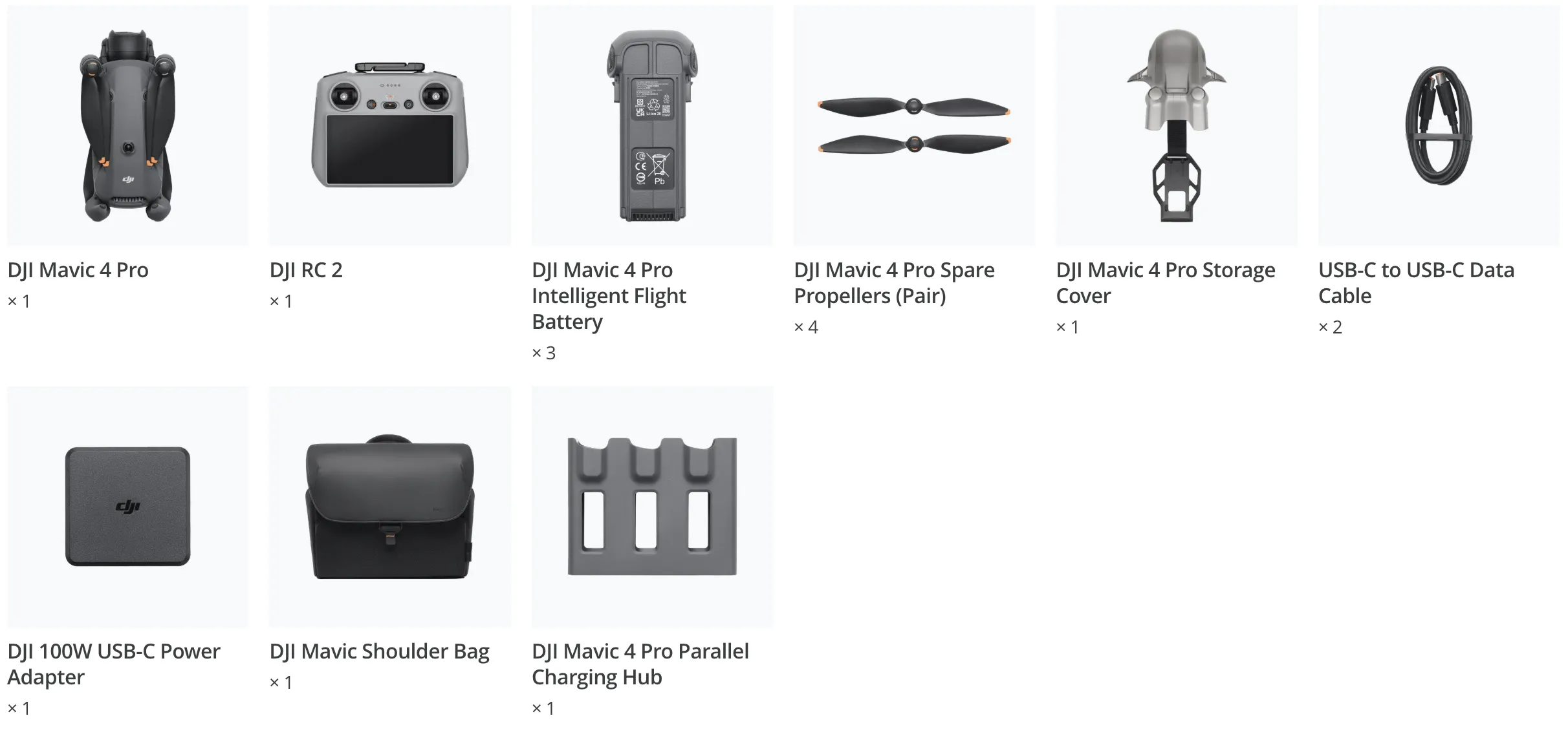 DJI Mavic 4 Pro Fly More Combo inkl. DJI RC 2 Inkluderer DJI RC 2, 3 × batterier, opladningshub, ekstra propeller og skuldertaske17.032,00 DKK