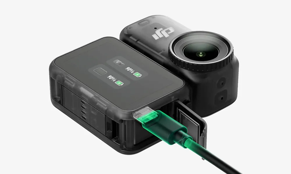 Den multifunktionelle véihælredokker understøtter hurtig opladning for både kameraet og sig selv. Når hovedkameraet oplades, tager det kun 20 minutter at nå 80% batteriniveau. Når det er monteret på kameraet og fuldt opladet, kan opsætningen optage op til 200 minutters 1080p/24fps video.