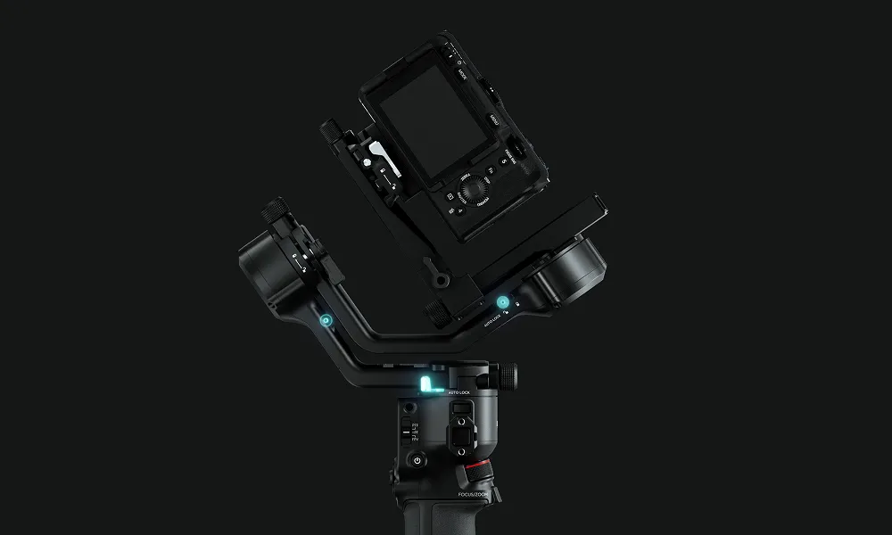 Gimbalen vejer kun 1,46 kg inklusive batterigreb og hurtigudløserplader, så den er nem at have med og hurtig at sætte op. Du kan skifte til lodret optagelse med det samme uden ekstra tilbehør. Den solide nyttelast på 3 kg (6,6 lbs) giver dig frihed til ubesværet at bruge populære spejlløse kamera- og objektivkombinationer.