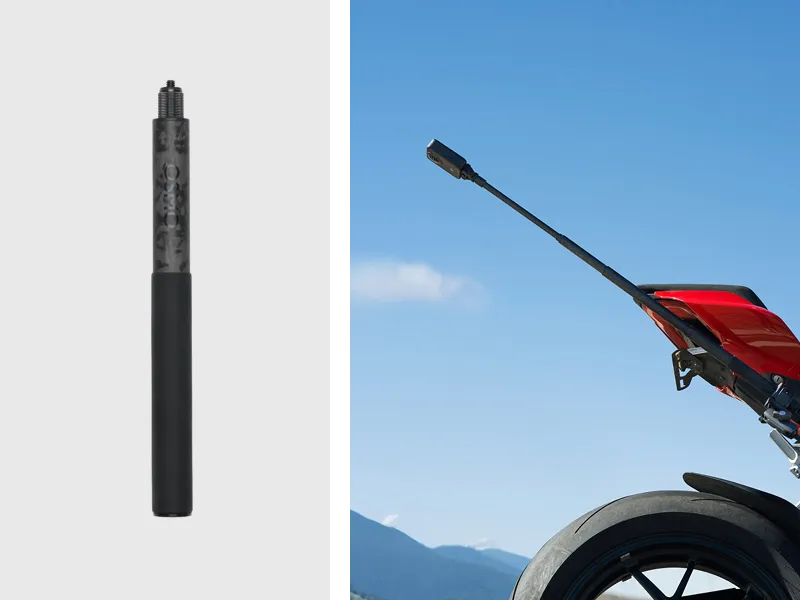 Omfatter et motorcykel heavy-duty beslag, en 1m højstyrke kulfiber usynlig selfie stick, dobbelt heavy-duty klemme og mere. Skift visninger, kør med spænding.