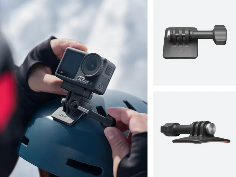 Quick-release design, secure connection, and compatibility with common action camera accessories.